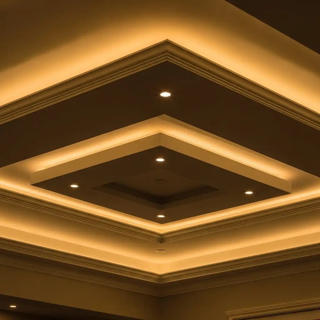 Dimmer switches provide flexibility to adjust lighting for different times and moods. Accent ceilings often look different under various lighting conditions, so controllable lighting ensures they always appear their best.
