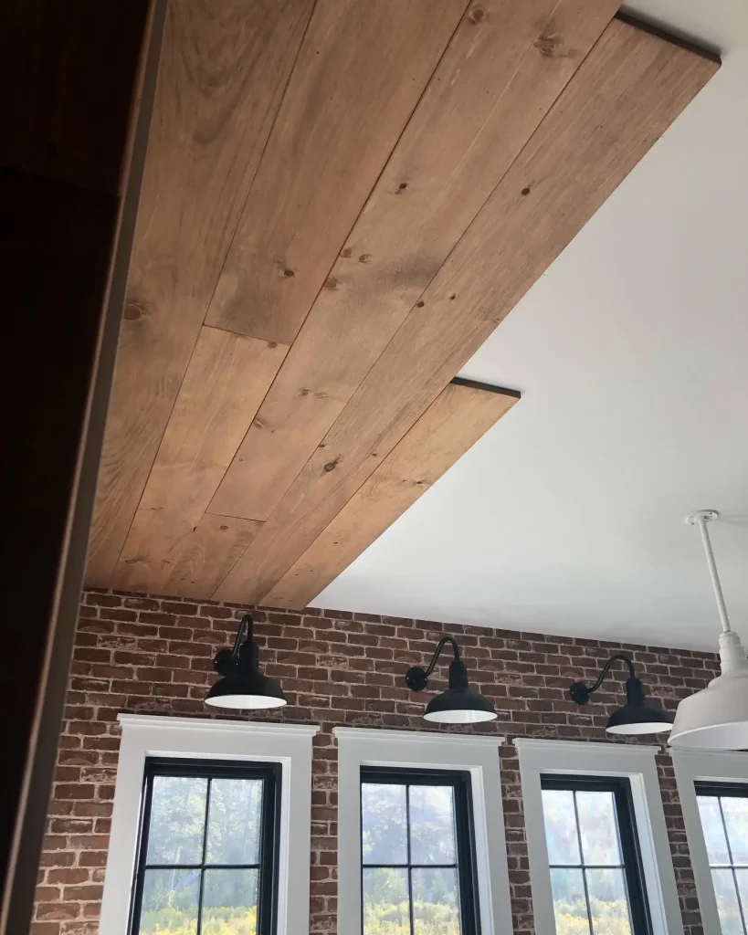 Real shiplap can be expensive. Use regular pine boards instead. Install them with small gaps between. Similar to techniques in drop ceiling ideas, this creates visual interest affordably.
