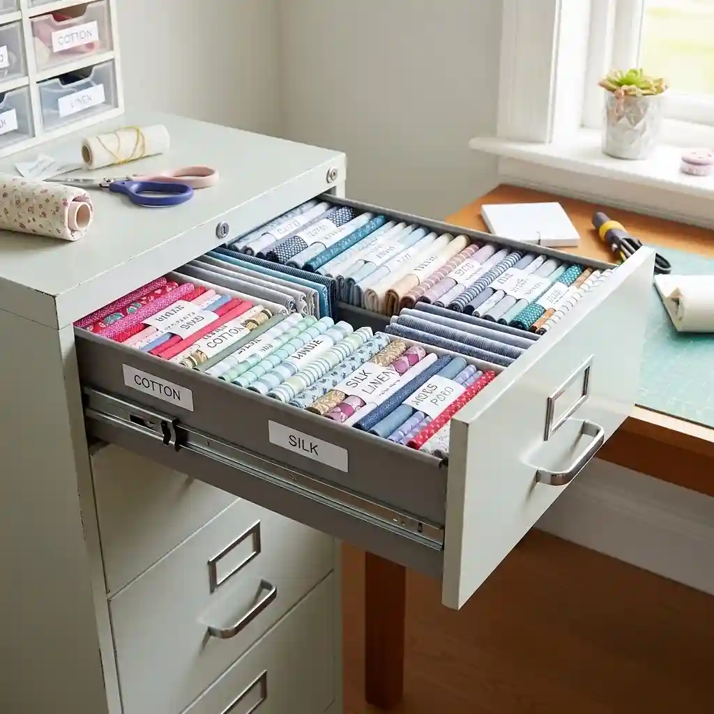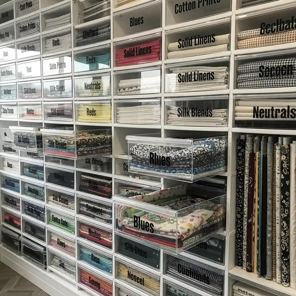Protect expensive fabrics with muslin or cotton wrapping additionally. Store wool fabrics with cedar or lavender deterring moths. Label everything clearly preventing mystery fabric accumulation over time. Regular inventory helps you use existing fabrics before buying more.