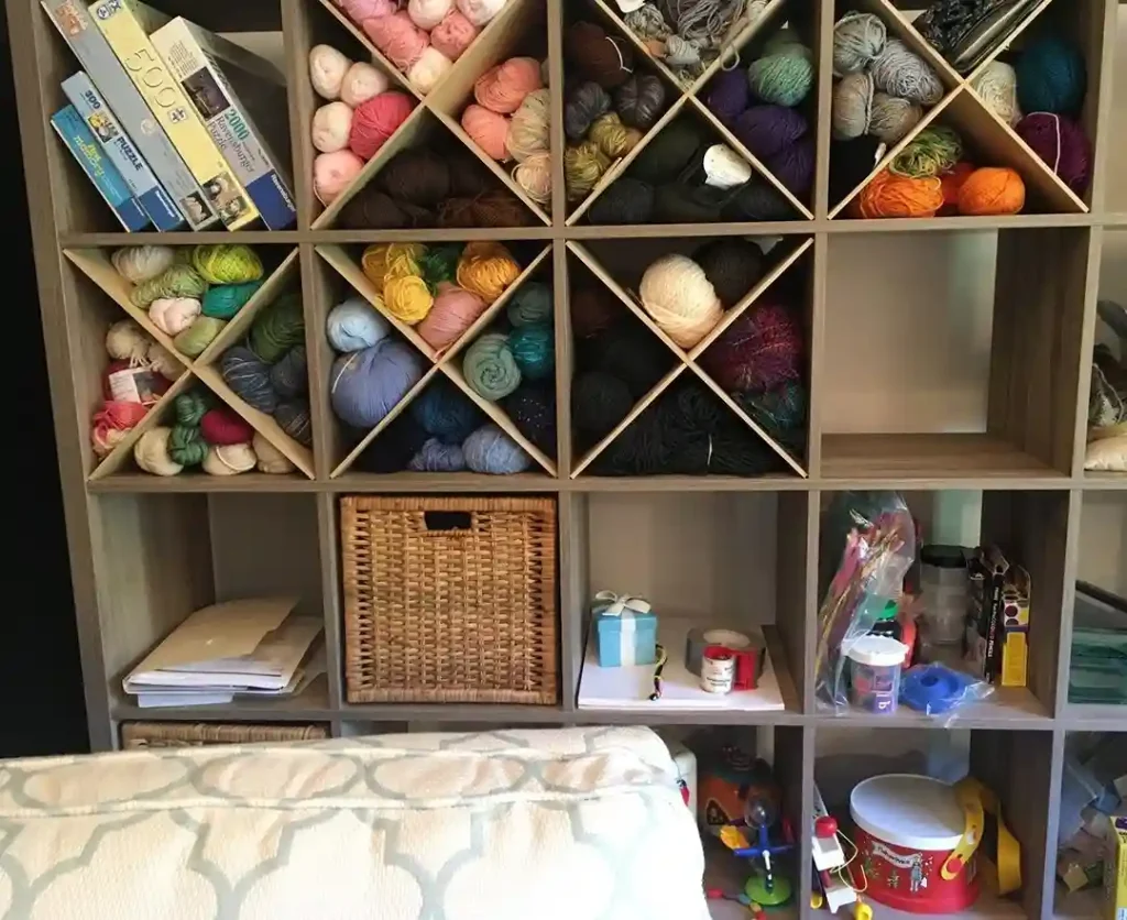 Fill cubes with canvas bins for a clean look. Or leave some cubes open for decorative fabric displays. Mix fabric storage with sewing book storage for functionality. The sturdy construction supports heavy fabric loads without sagging ever.