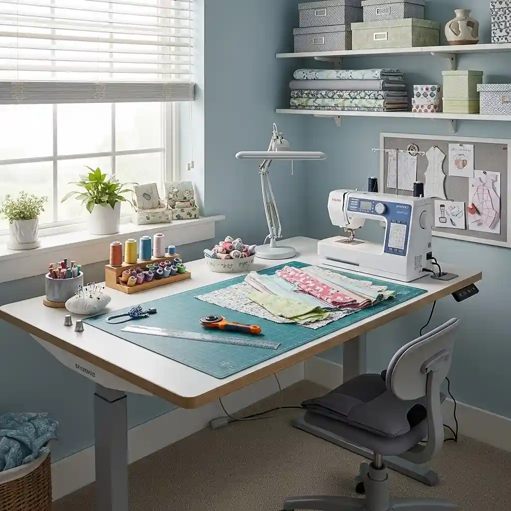 Essential items include a sturdy work surface, adequate lighting, comfortable seating, and organized storage for thread and basic notions. A dedicated spot for your sewing machine, even if fold-away, is crucial for regular use. Basic cutting tools, measuring equipment, and pressing supplies complete the essentials. Everything else can be added gradually as space and budget allow without preventing functional sewing immediately.
