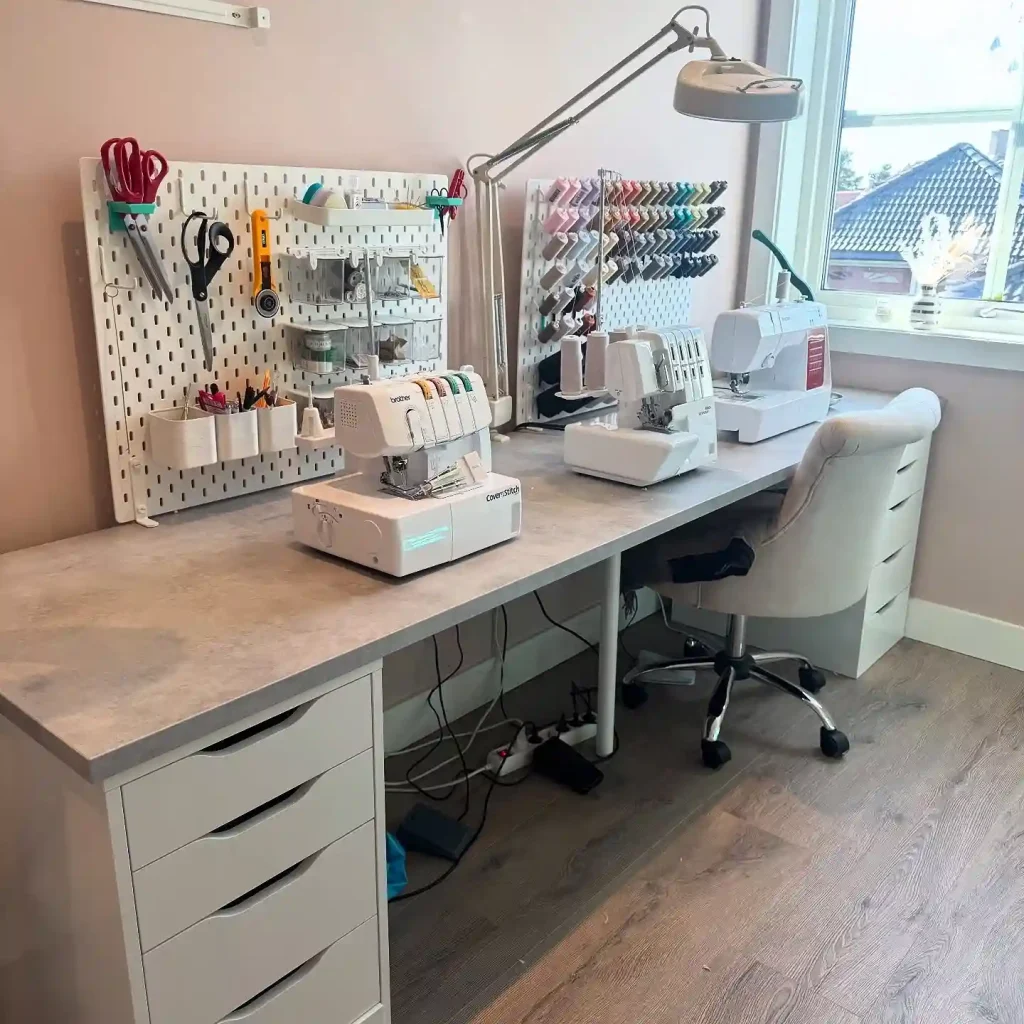 A functional sewing room can exist in spaces as small as 5×5 feet with proper organization and planning. The key is maximizing vertical storage, using multi-functional furniture, and keeping only essential supplies immediately accessible. Many sewers successfully work in closet-sized spaces measuring just 3×6 feet by installing fold-down tables and wall-mounted storage solutions creating complete functional workspaces.